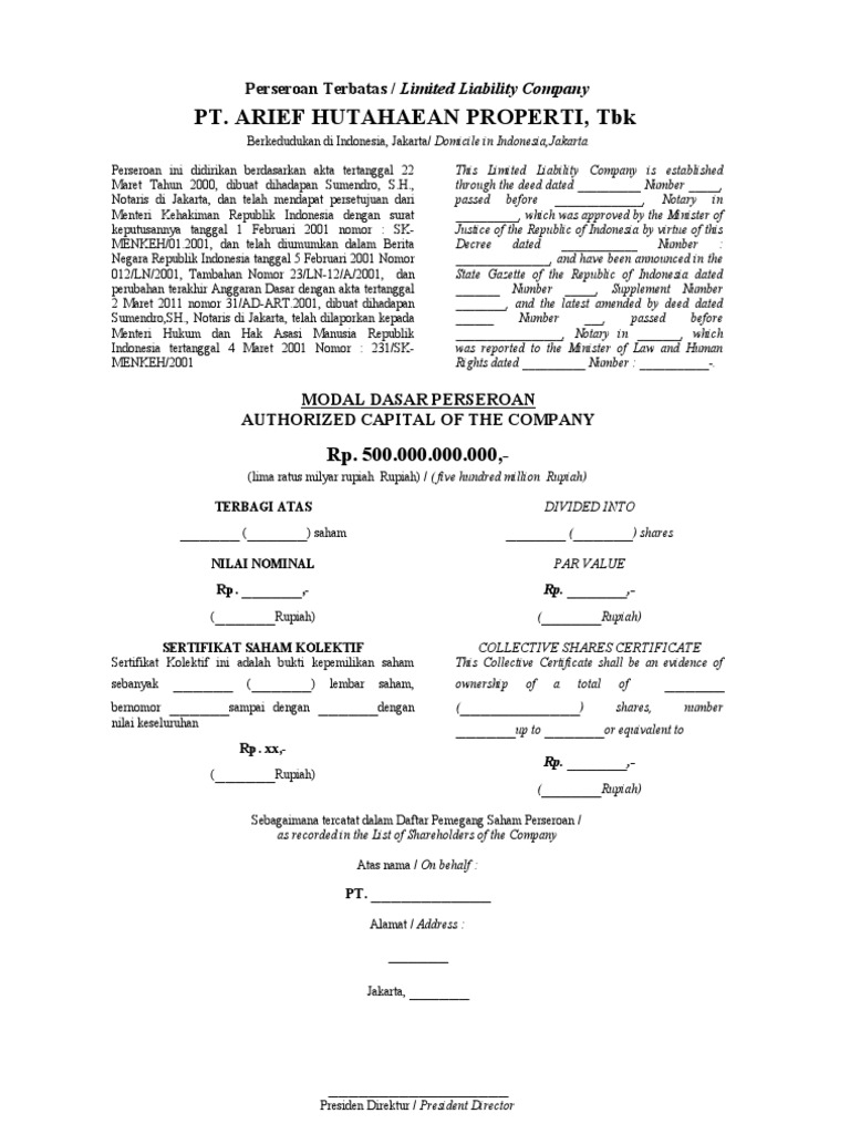 Surat saham dan surat kolektif saham english translation: Perseroan dapat mengeluarkan surat saham. Bagi pemegang saham yang sahamnya belum masuk dalam penitipan kolektif ksei atau sahamnya masih dalam bentuk warkat, permohonan stock split dapat dilakukan mulai tanggal 22 februari 2021 dengan menyerahkan asli surat kolektif saham (sks) atas nama pemegang saham dan fotokopi bukti identitas pemegang saham kepada kantor biro administrasi efek.