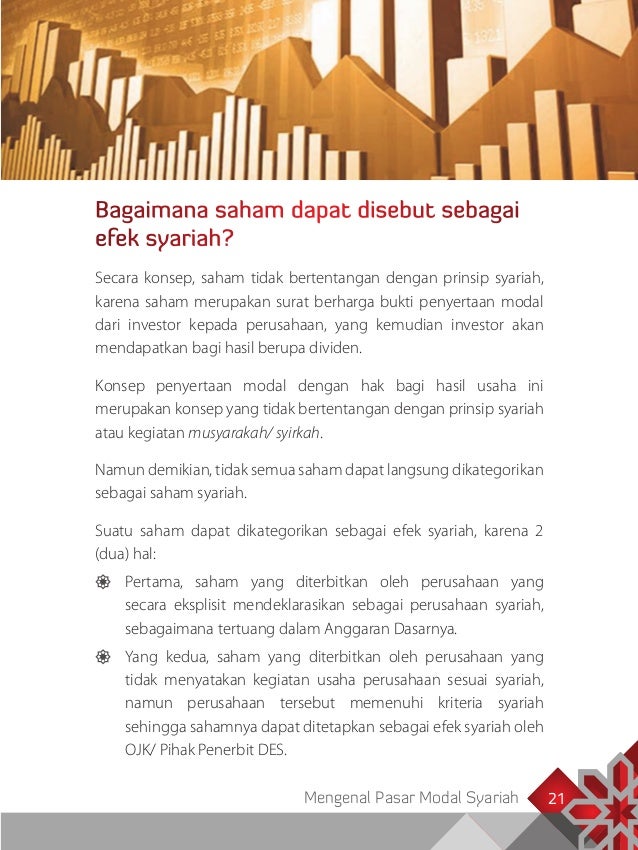 This paper is an attempt to analytically describe limited shares Direktur utama bursa efek indonesia inarno djajadi menjelaskan bahwa pasar modal syariah dalam negeri berhasil tumbuh pesat dalam 5 tahun terakhir. Ia merincikan jumlah outstanding efek syariah di pasar modal meliputi 467 saham syariah, 163 sukuk korporasi, 284 reksa dana syariah, serta 65 sukuk negara.